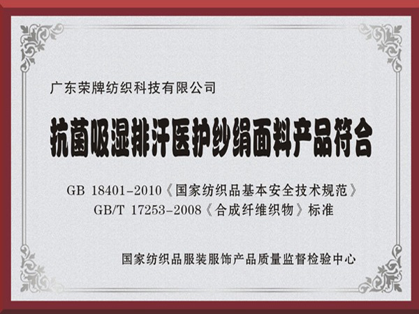 熊猫体育抗菌吸湿排汗医护纱绢面料产品符合国家标准